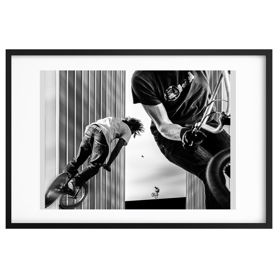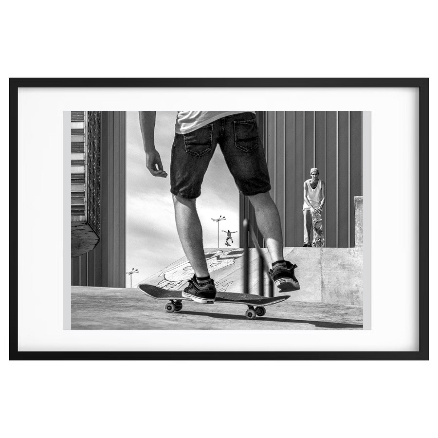 Černobílá fotografie z autorského cyklu Skateboarders, vystavená na mé autorské výstavě Téměř dvě dekády v Krnově (2025).