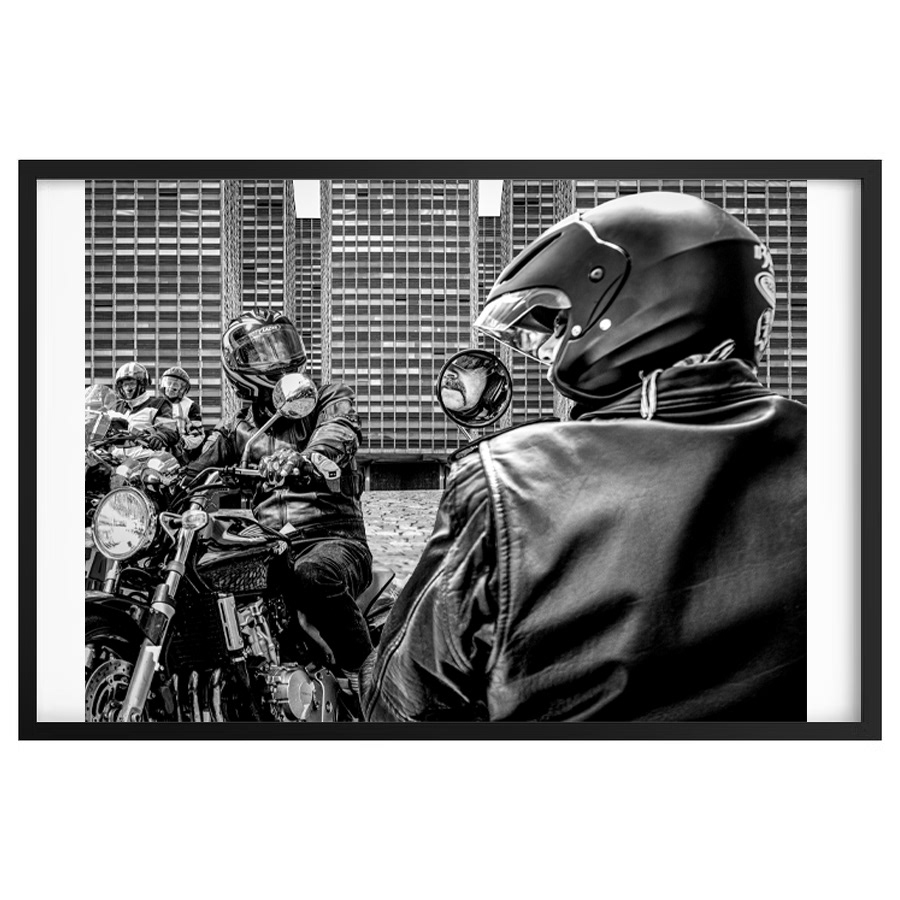 Černobílá fotografie z autorského cyklu Bikers, vystavená na mé autorské výstavě Téměř dvě dekády v Krnově (2025).